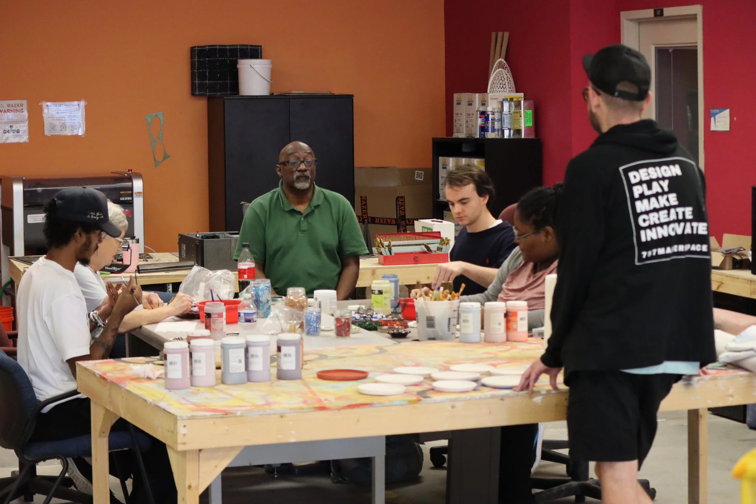 Ceramics, textiles, illustration, screen printing, jewelry, and everything handmade. The art side of the makerspace.