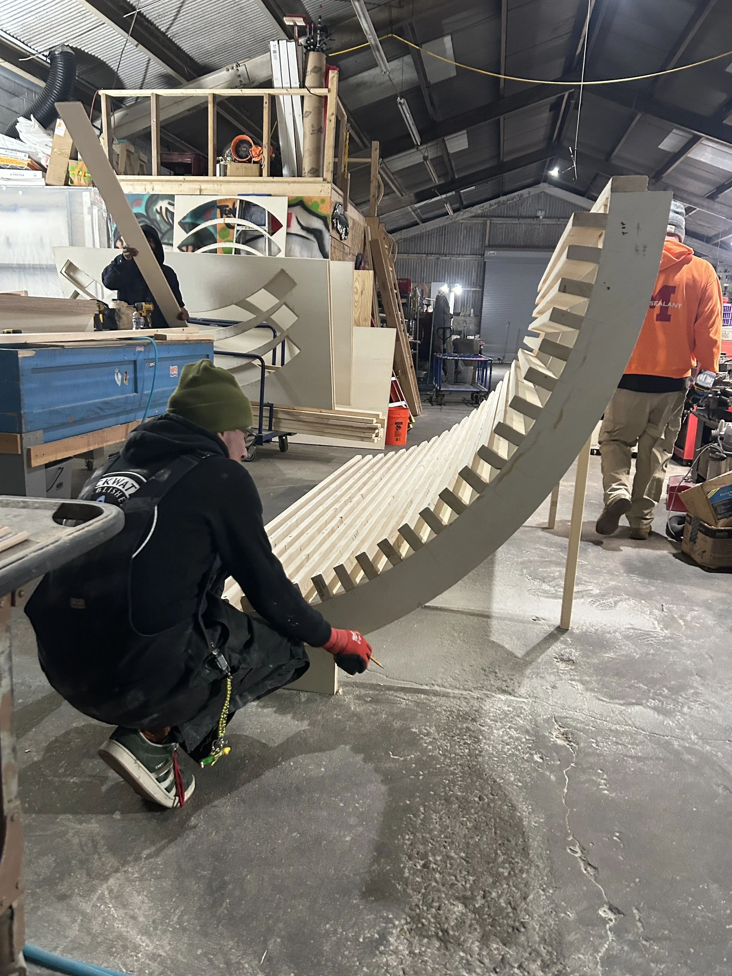 24/7 access meant parallel workflows. While one team member cut wood on the track saw, another ran components through the CNC, and a third was assembling sections in the open floor space. No waiting for "shop hours." No bottlenecks. When they needed help cutting on the CNC, they had it here with another member to add to their team workflow.