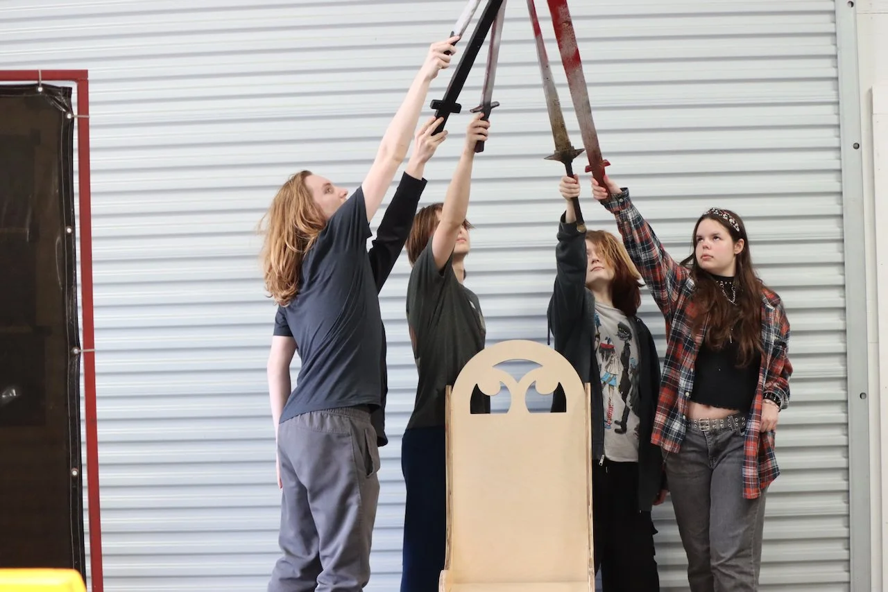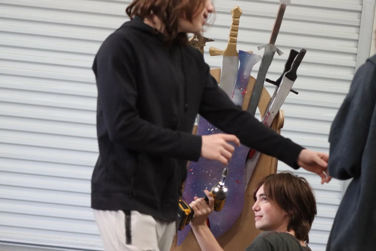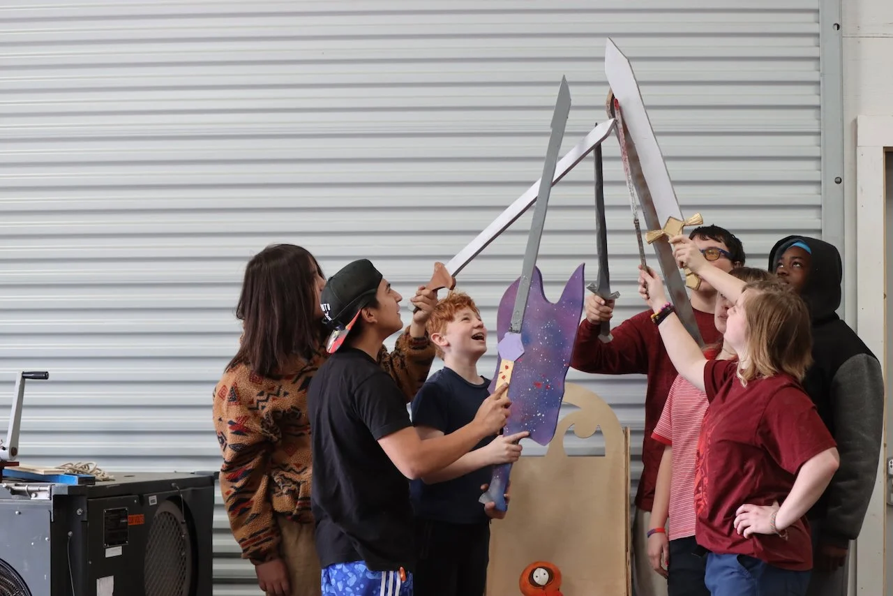 Then we CNC-cut the full-size throne, hand-built custom swords in the woodshop, assembled everything, and installed it at their school. It's still there.