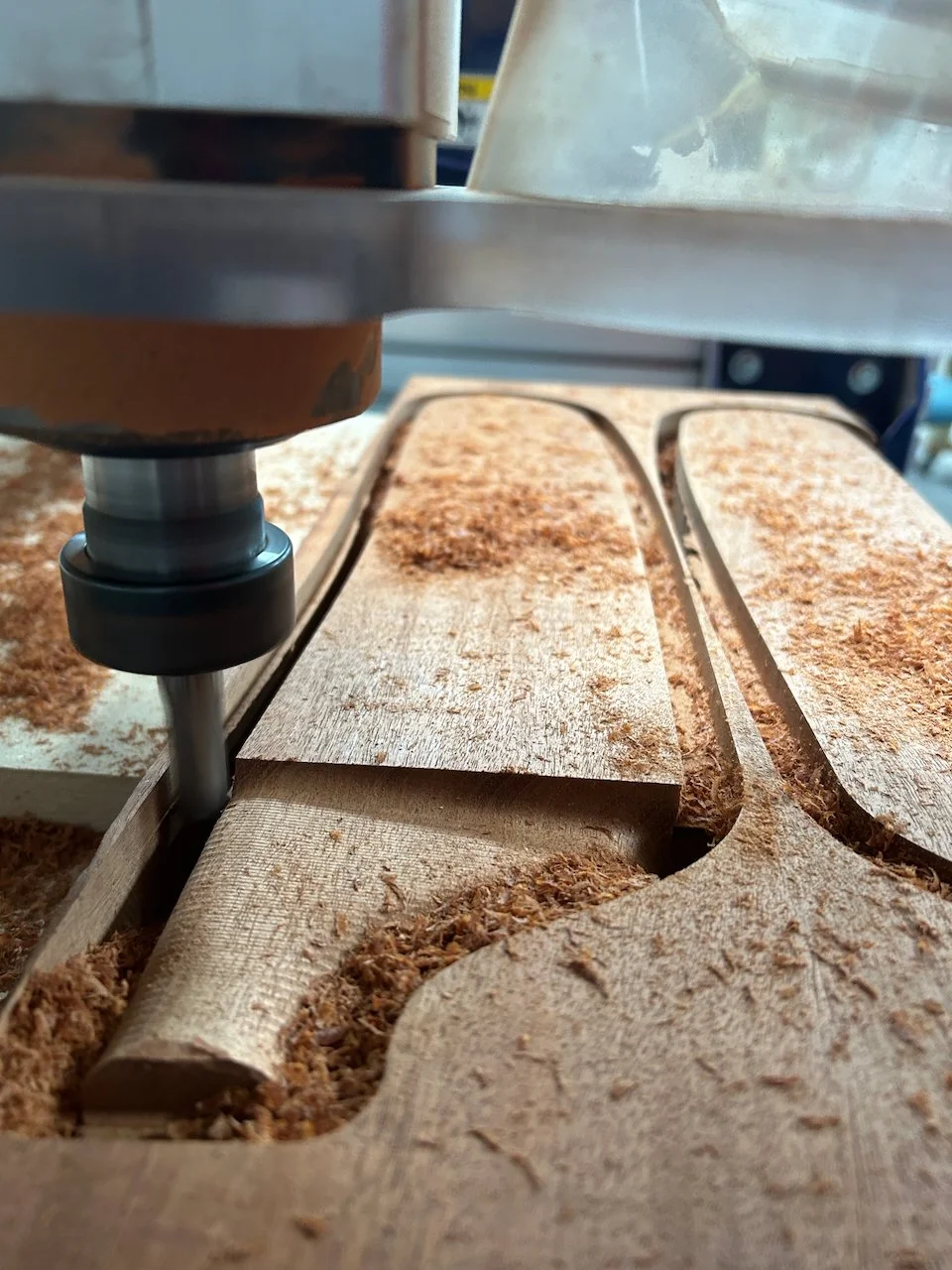 Working out of our 757 Makerspace Norfolk location, Bill treated CNC like any craft worth learning by starting from the ground up. He spent his first month learning CNC fundamentals on scrap material before touching the mahogany, building confidence with toolpaths, fixturing, and alignment before committing to the final stock.